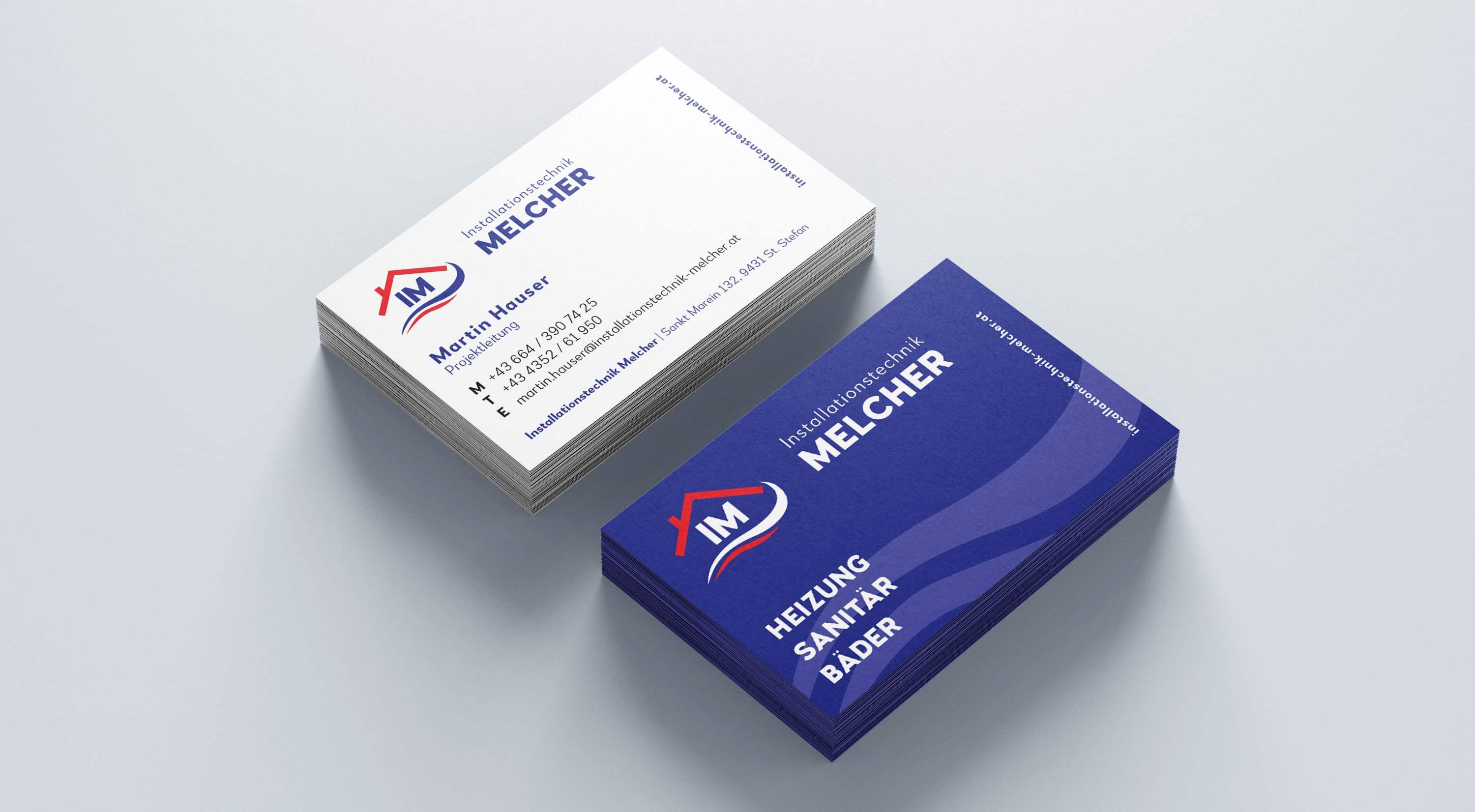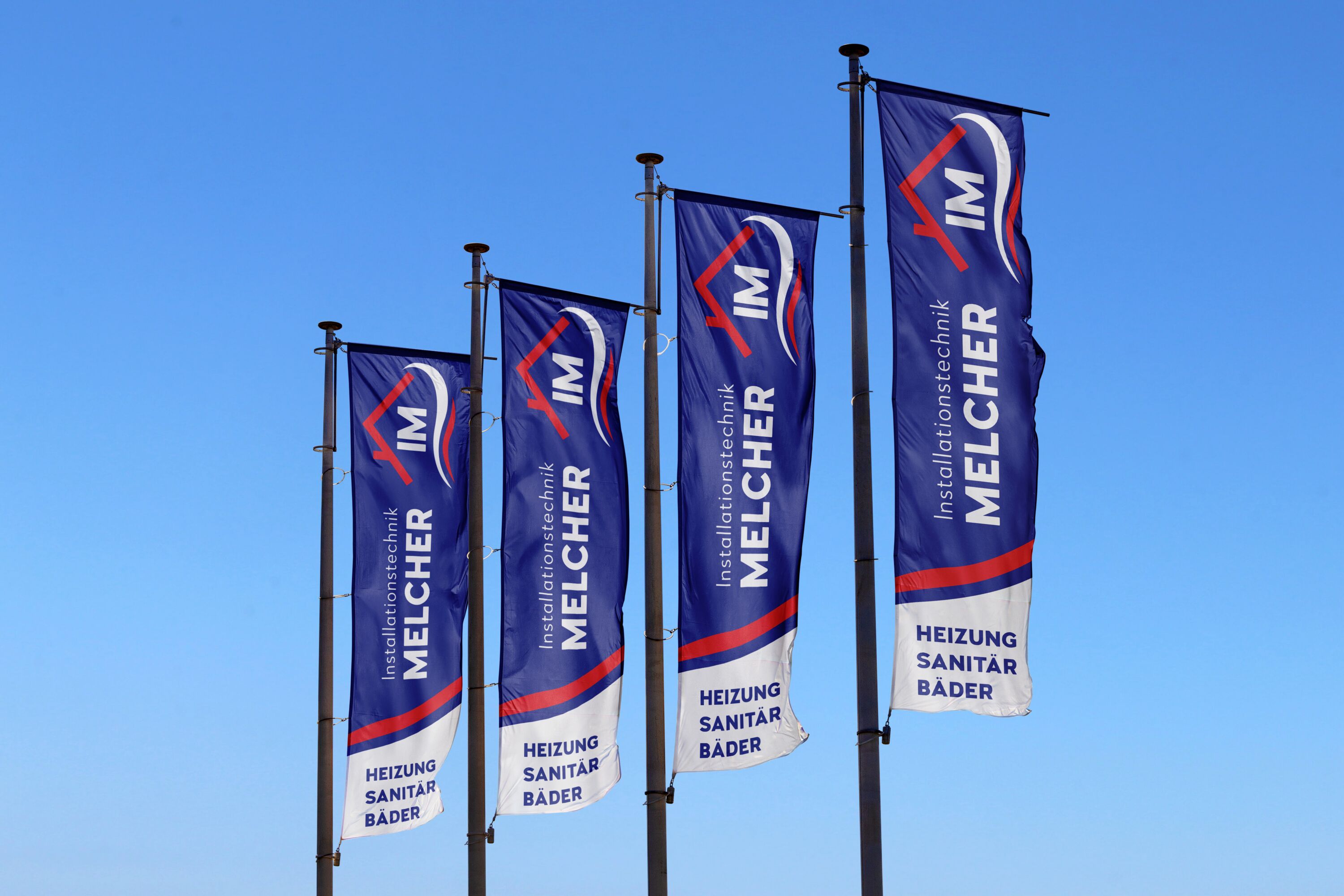 Soft-Relaunch der Marke "Installationstechnik Melcher" mit Gestaltung und Umsetzung von diversen Drucksorten, sowie Beschriftungen und Gebäudebeschriftungen.